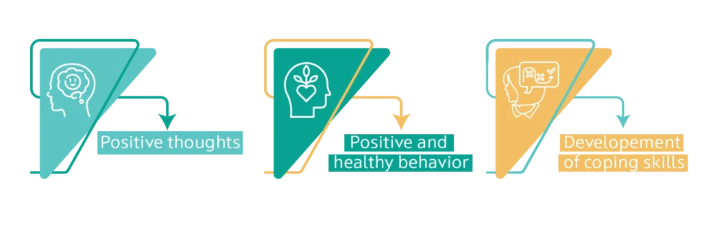 Helps in acknowledging the thoughts, staying in the present moment, and learn coping strategies.